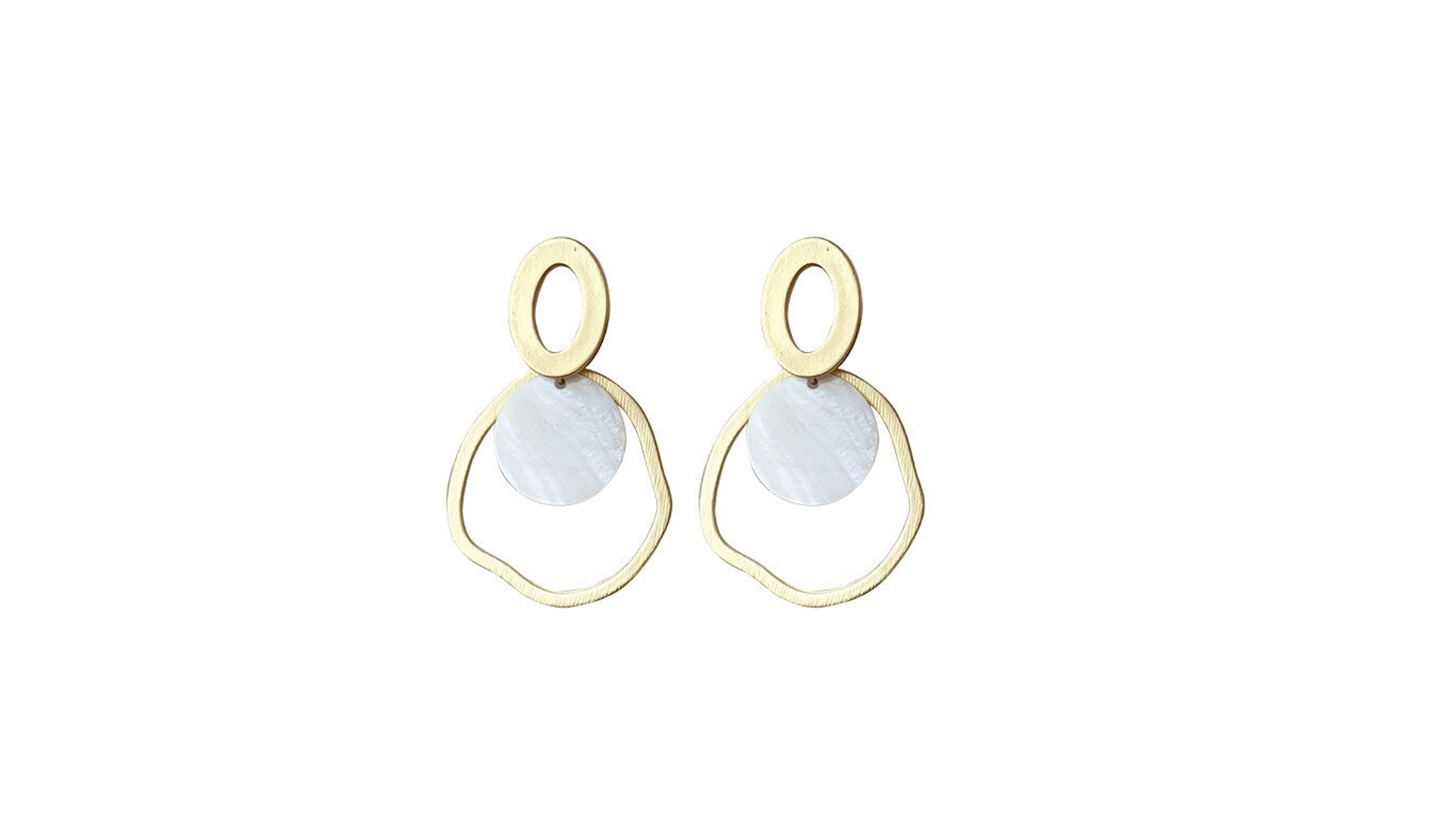 Home Brincos Irregular Irregular 8,99 € Desconto de %. Comprar Contactar Adicionar à wishlist Brincos dourados com aplicação de madre pérola. Altura: 5,5cm Partilhar