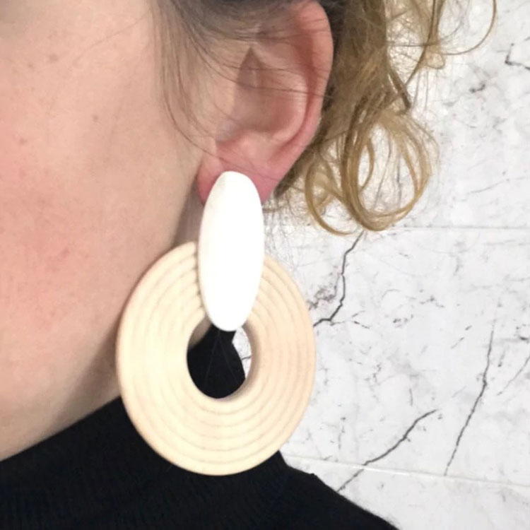 Home Brincos Woody Woody 7,49 € Desconto de %. Comprar Contactar Adicionar à wishlist Brincos em madeira, grandes e super leves. Altura: 8cm Partilhar
